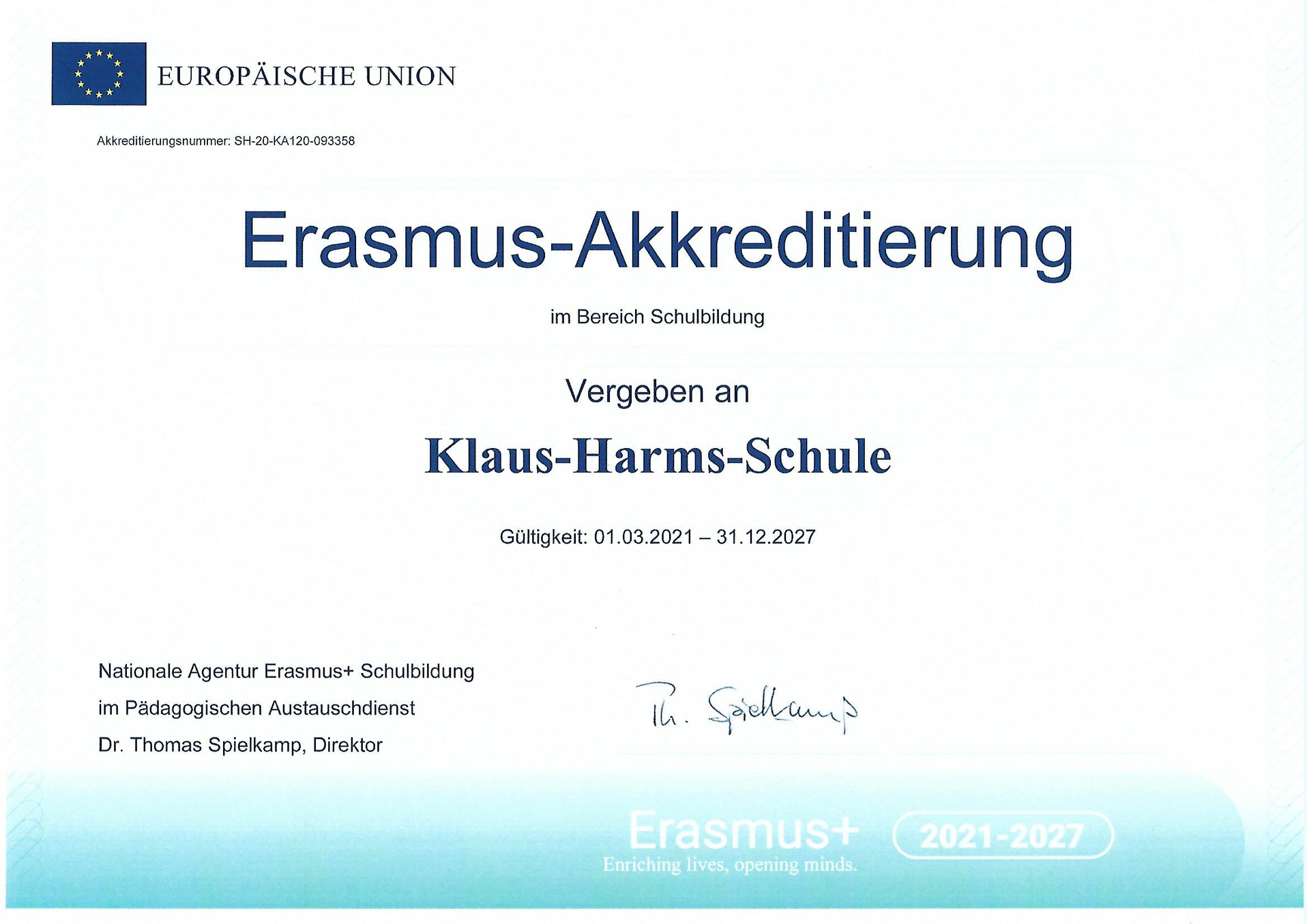 Anfang 2021 hat die KHS nach einer erfolgreichen Bewerbung die Erasmus-Akkreditierung bis 2027 erhalten. Das bedeutet, dass die Schule jährlich EU-Mittel für Fortbildungen und Schülerprojekte im europäischen Ausland abrufen kann.